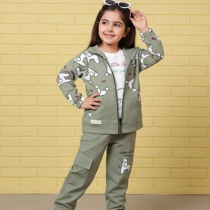 خرید ست سویشرت و شلوار 3 تکه دخترانه لاما مناسب 2 تا 6 سال مناسب پاییز و زمستان