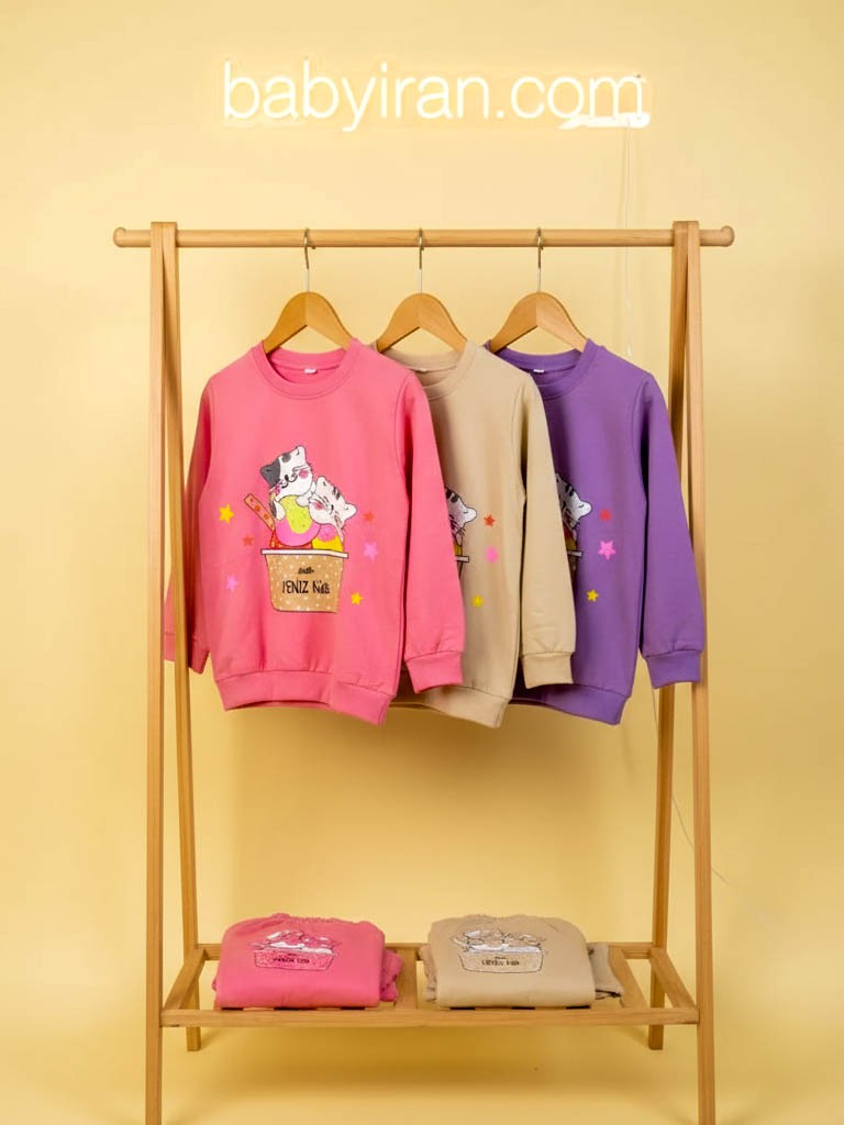 لباس دخترانه شیک و جدید پنبهای طرح گربه گلدوزی شده رنگبندی شاد و راحت مناسب پاییز و بهار و زمستان