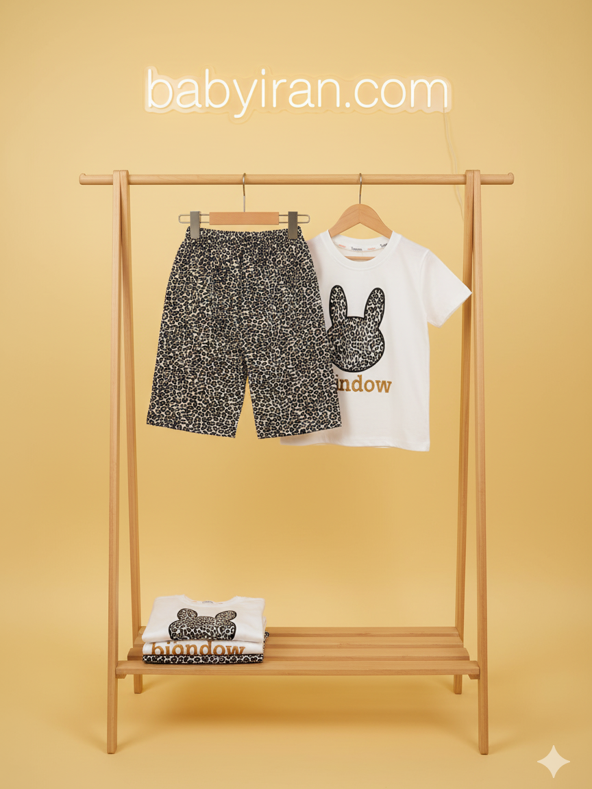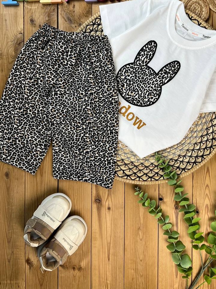 ست لباس بچگانه دخترانه طرح خرگوش با شلوارک پلنگی