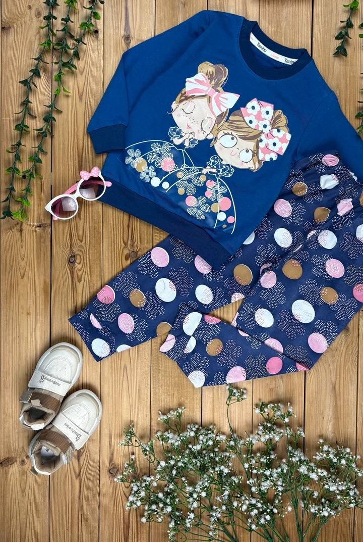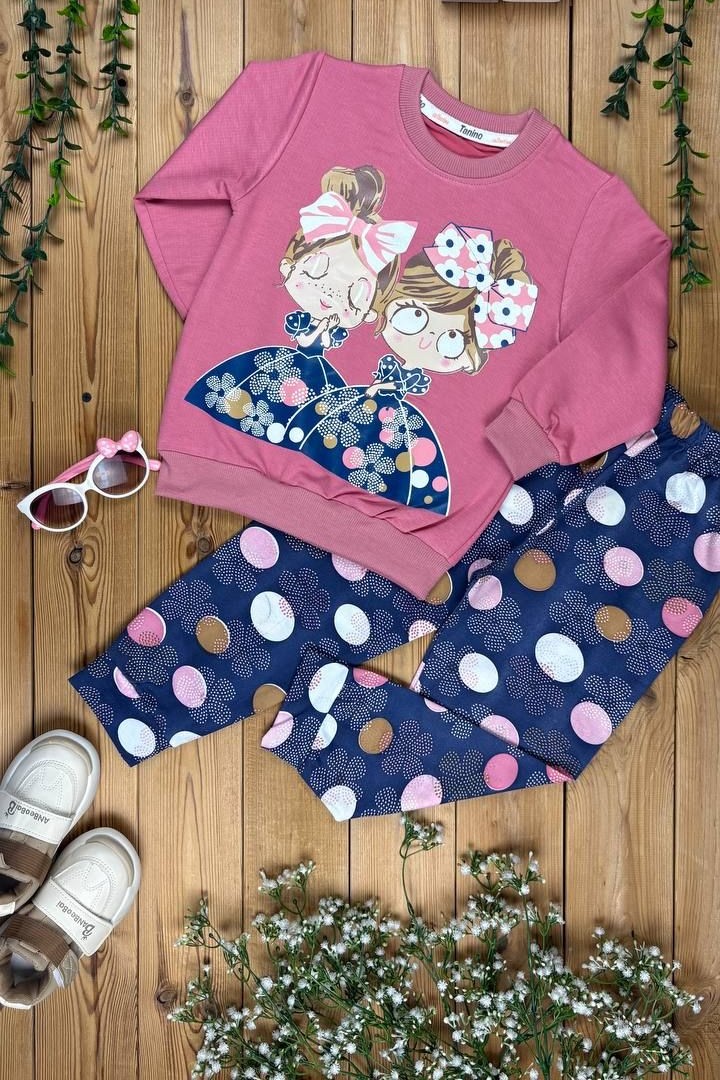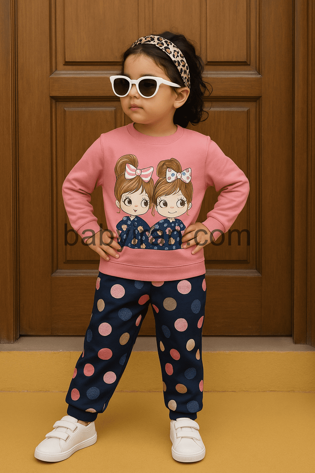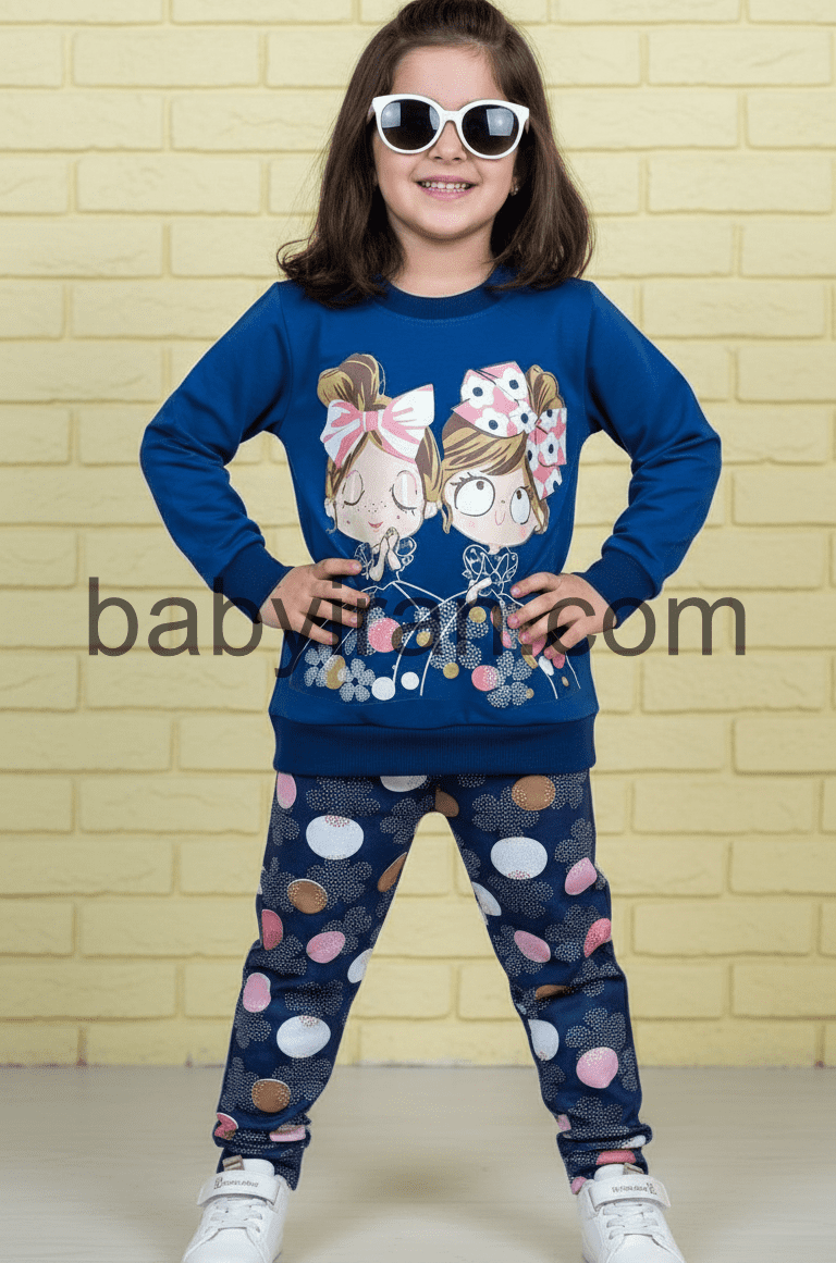 ست دورس و شلوار اسپرت پاییزی دخترانه – بلوز آستین بلند و شلوار خالدار