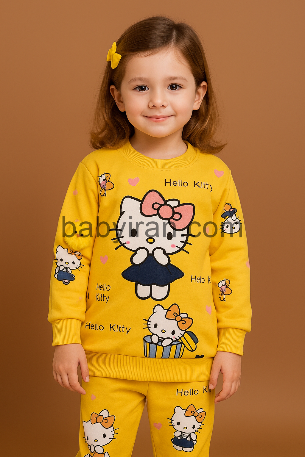 شخصیت دوستداشتنی هلوکیتی "Hello Kitty" با چاپ واضح و باکیفیت روی بلوز و شلوار، کودکان را به وجد میآورد و حس شادی و بازیگوشی را در آنها زنده میکند.